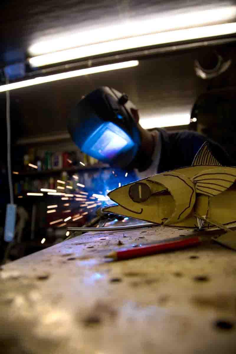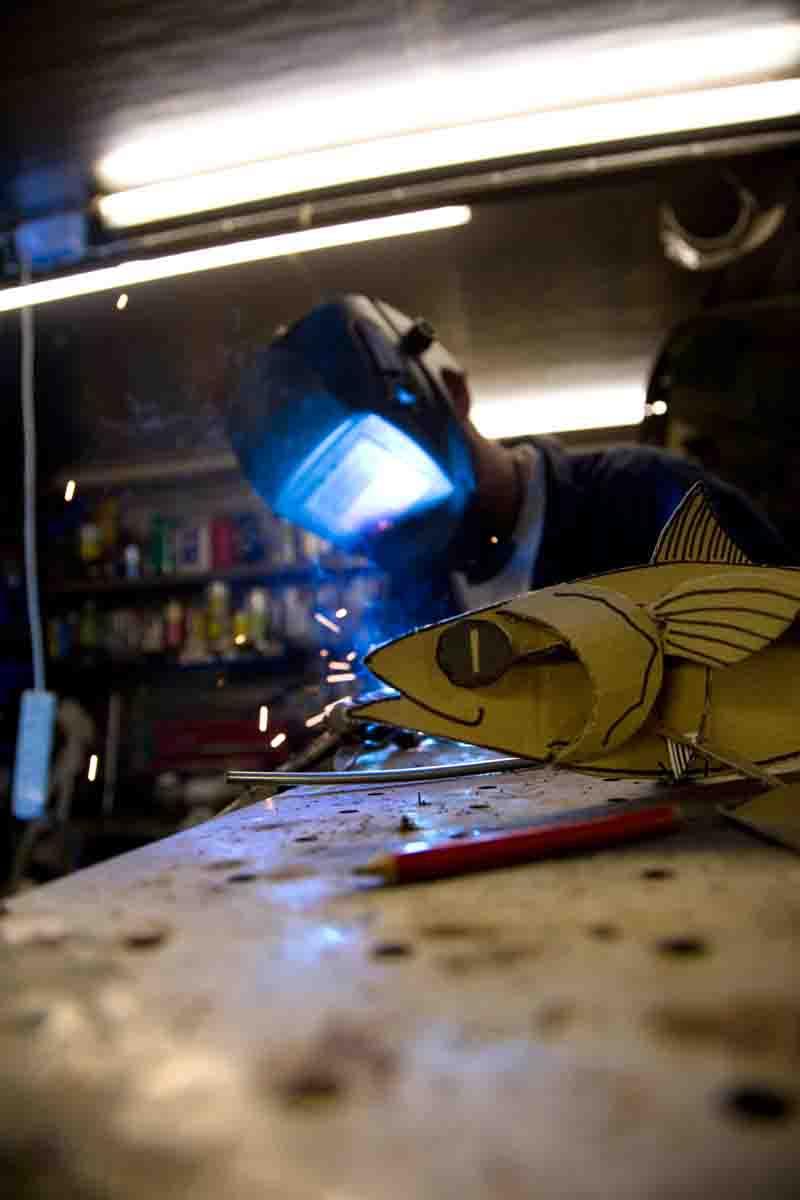 Photos from the design, manufacturing and installation of the Intertidal sculptures.